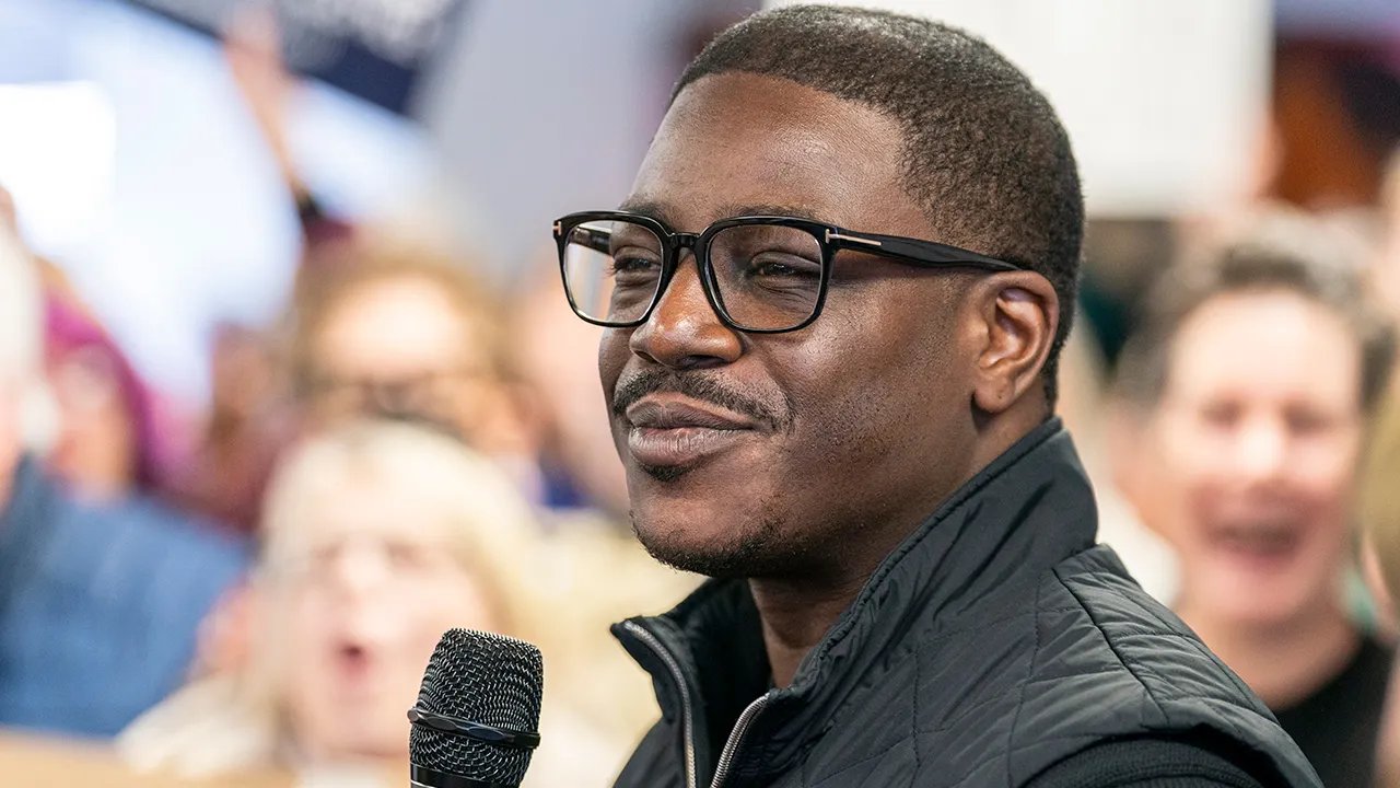 El ejecutivo del condado de Milwaukee, David Crowley, se dirige a una multitud en una parada de campaña para la candidata de la Corte Suprema de Wisconsin, Susan Crawford, el sábado 29 de marzo de 2025 en Milwaukee. (AP Photo/Andy Manis, archivo)