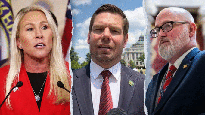Rep. Marjorie Taylor Greene, R-GA. (izquierda), Rep. Eric Swalwell, D-Calif. (Centro), y el representante Derrick Van Orden, R-Wisc. (Derecha), todos lloraron el tiroteo mortal de Charlie Kirk el miércoles. (Getty Images y Fox News Digital/Elizabeth Elkind y Tom Williams/CQ-Roll Call, Inc a través de Getty Images)
