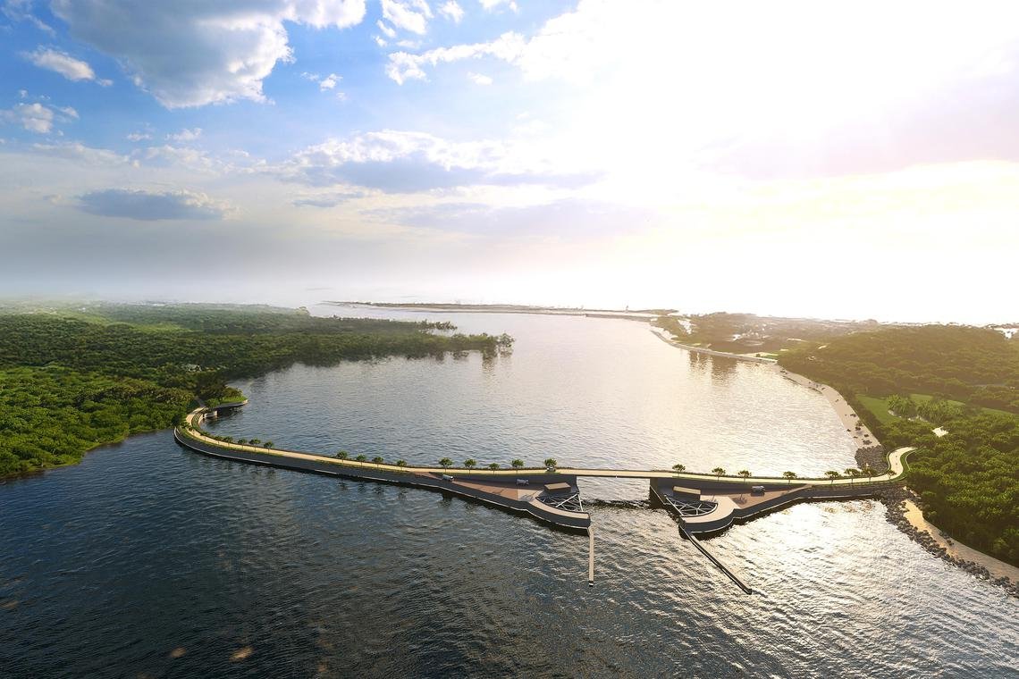 Las puertas de marea construidas en las salidas del canal estarán cerradas durante la marea alta y el clima costero extremo para mantener fuera el agua de mar.