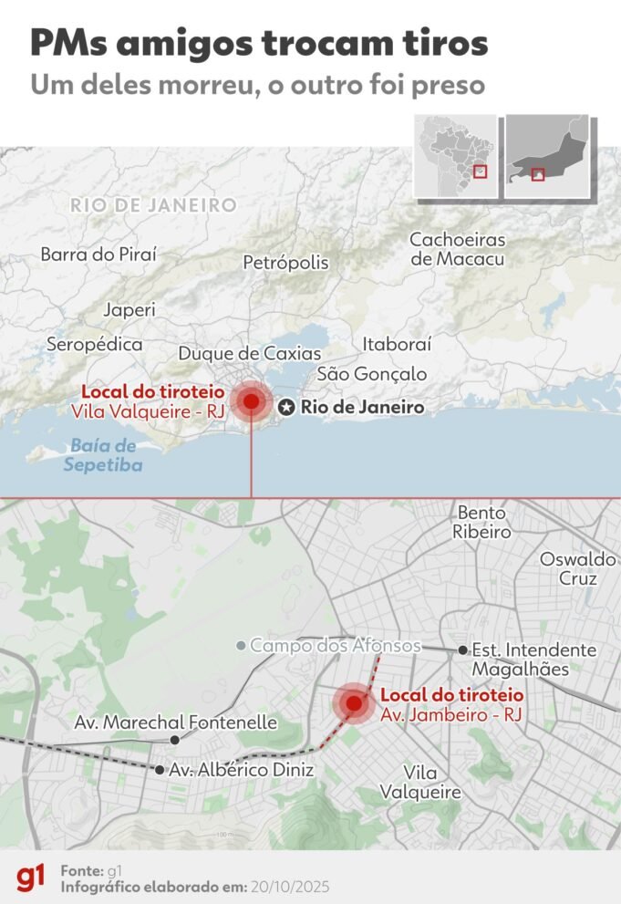 Antes de que el primer ministro fuera asesinado por su amigo William Amaral da Concesio, Eduardo Felipe Santiago Ferreira incluso suplicó no morir. “¡Amaral! ¡Amaral! ¿Estás loco? ¡Soy yo, Santiago, hermano!”, dijo la víctima. “¡Jódete! ¡Te mato!”, respondió el tipo. “¡Amaral, soy Santiago!”, insistió otro. Inútil: Santiago muere en un tiroteo con al menos 8 balazos. g1 describe el crimen basándose en la grabación de una cámara de seguridad. ¿Quién está involucrado? Hijos de William Amaral da Conceicao y Eduardo Philip Santiago Ferreira Eduardo Philip Santiago Ferreira, Sargento Santiago, 18° BPM (Zacarepagua), fallecido; El sargento Amaral William Amaral da Concecio, del 40º BPM (Campo Grande), resultó herido y detenido en el acto. Asistieron al bautismo de sus hijos y estuvieron en pausa. ¿Dónde fue el tiroteo? Mapa que muestra el lugar del tiroteo Infografía: Verónica Medeiros/G1 Fue frente a la Avenida Zambeiro, 525, en Villa Valcare, en la región suroeste de Río de Janeiro. Apenas la medianoche del domingo (19), llovía intensamente. ¿Cómo empezó la pelea? El motivo del intercambio de disparos no se conoció hasta la última actualización de este informe. Ahora veamos lo que se sabe. Descendiendo el Desembarco de Amaral Reproducción/Condominio TV Globo Foto de cámara, el Fiat Idea que transporta a Santiago y Amaral se detiene en medio del carril derecho del canal de la Avenida Jambeiro. Una app para que los motociclistas sigan tocando bocinas, quejándose y maniobrando. Santiago, que irá al volante, sale con dificultades para los pasajeros. Una vez en la pista, intenta hablar con su amigo. “¡Amaral! ¡Amaral! ¡Amaral! Amaral, ¿estás loca?”, repitió. El amigo también abandona Idea, ya con una pistola en la mano, pero de manera torpe. Amaral termina rodando por el asfalto, y no suelta el arma ni siquiera después de caer. “¡Vete a la mierda!”, jura. Se levanta y sigue a Santiago, atónita. Durante unos segundos de más súplicas y disparos, los sargentos abandonan el encuadre. Santiago reaparece frente al auto, aún desarmado, y le estrecha la mano para calmarse. “¡Te voy a matar!” dijo Amaral. “¡Es Santiago, hermano!”, responde. Amaral, todavía fuera de cuadro, dispara. Luego, Santiago sacó una pistola de su cintura y disparó. Intenta esconderse en la puerta del pasajero aún abierta, pero Amaral lo persigue. Valqueire Reproducción/TV Globo Bangue-bangue Intercambio de tomas en Tempers flare. Santiago, fuera del alcance de la cámara, vuelve a disparar. Amaral se aleja unos metros del frente del Idea y regresa al lado del conductor, donde también está su amigo. A lo lejos se oye la bocina; no pasa ningún otro vehículo. El hombre en el suelo gira en sentido antihorario rodeando el Fiat Santiago, hacia la puerta abierta. Amaral se acerca y dispara, esta vez impactando en el pecho a su amigo, quien cae al suelo. Al caer, se golpeó la cabeza con la puerta del pasajero, que cerró a la fuerza. Se escucha un último disparo. Un auto y una moto pasan cuando Santiago se va. Santiago muere en el lugar. Reproducción/TV Globo Un equipo del batallón de Santiago fue llamado después del enfrentamiento y lo encontraron muerto. Amaral se sentó con el arma del asesinato. Fue detenido en el acto e ingresado en el Hospital Municipal Albert Schweitzer de Realengo y posteriormente trasladado al Hospital Central PM de Estacio. Ya ha sido liberado. Amaral dijo a la policía que no recuerda el momento del tiroteo. También informó al Primer Ministro que habían sido víctimas de un intento de robo antes de la llegada de la policía civil. Sin embargo, no hay evidencia de un ataque.