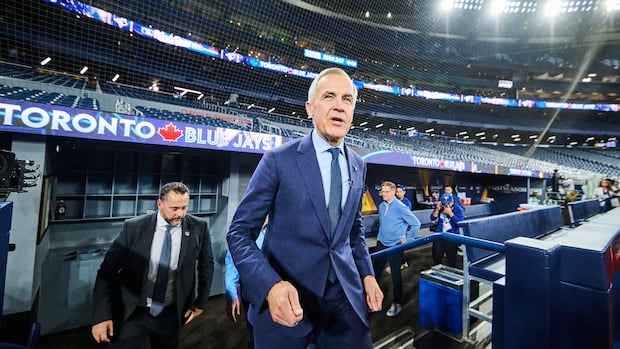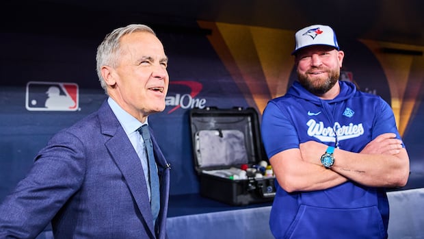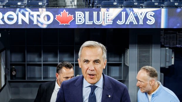 El primer ministro Mark Carney se unió a los Azulejos de Toronto para practicar en el Rogers Centre el jueves por la tarde mientras los Azulejos se preparan para enfrentarse a los Dodgers de Los Ángeles en el primer juego de la Serie Mundial el viernes por la noche.