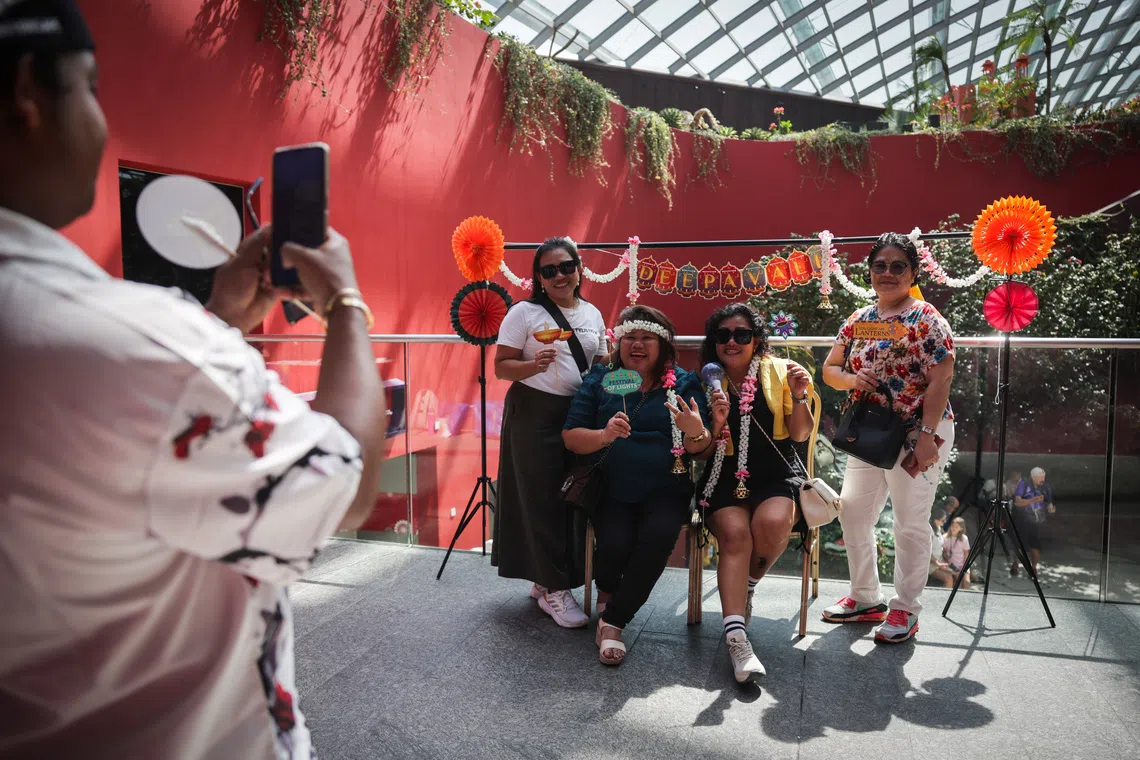 algo 600 participantes ha sido reunido Salón del campo de flores en Gardens by the Bay Para actividades como espectáculos culturales, juegos, así como ceremonia de encendido de lámparas.