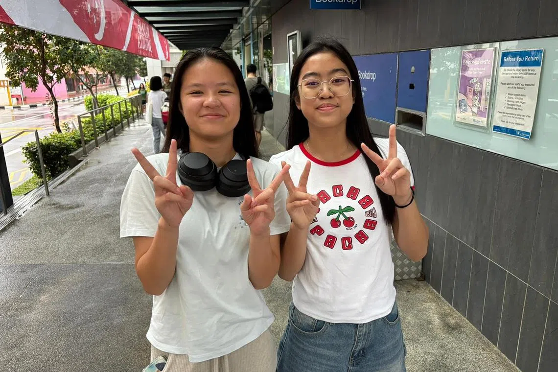 Gn Cheng, 15, (izquierda) y Elisha Goh, 15, Sec 3 Estudiantes en la Escuela Chiz St Nicholas Girls School.
