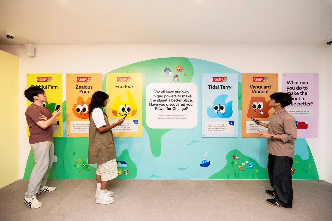 Los visitantes responden preguntas en los puntos de control de la Carbon Gallery y luego descubren qué personaje de la “fuerza del cambio” representa mejor su personalidad de sostenibilidad.