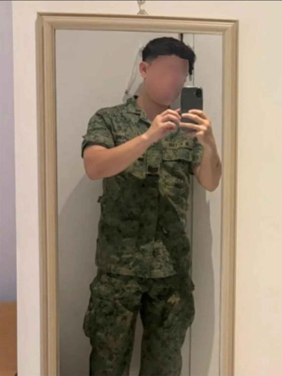 Aunque no indicó la foto de perfil de que vino del campamento Bedok, su nombre de uniforme privó el nombre de la etiqueta Bronceado, en lugar de Ong’sEl