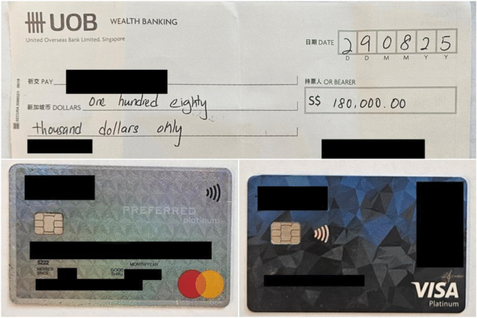 El 8 de agosto, la policía respondió a la solicitud de la UOB de retirar el sospechoso cheque de efectivo por encima del mostrador de Jung en una sucursal.