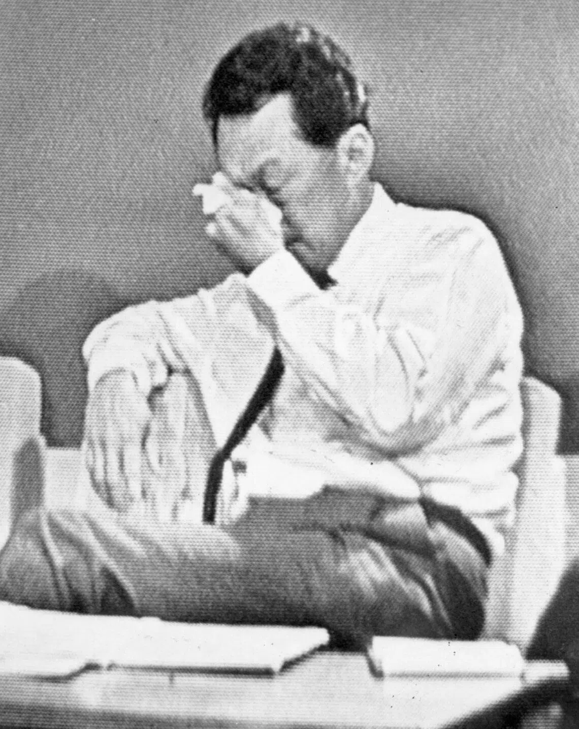 Un emocionado Primer Ministro Lee Kuan Yew durante una conferencia de prensa para anunciar la separación de Singapur de Malasia en 1965.