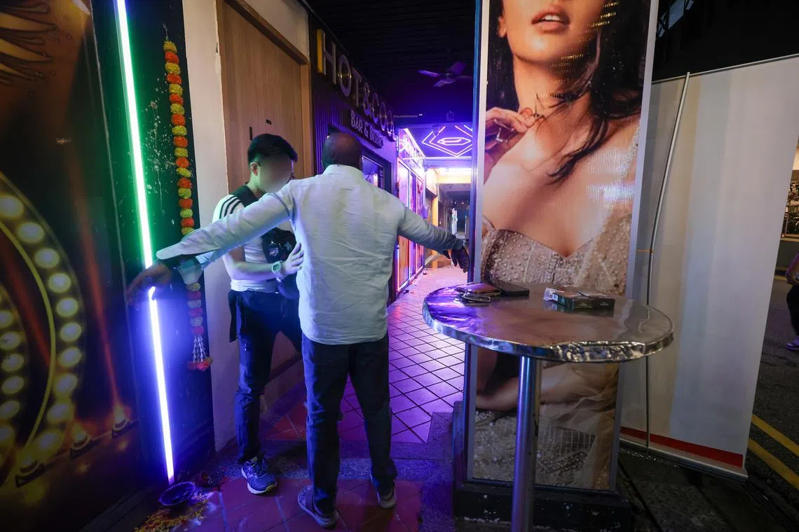 La policía está revisando a los clientes de los medios de entretenimiento público durante la redada de la policía en la mañana del 12 de septiembre.