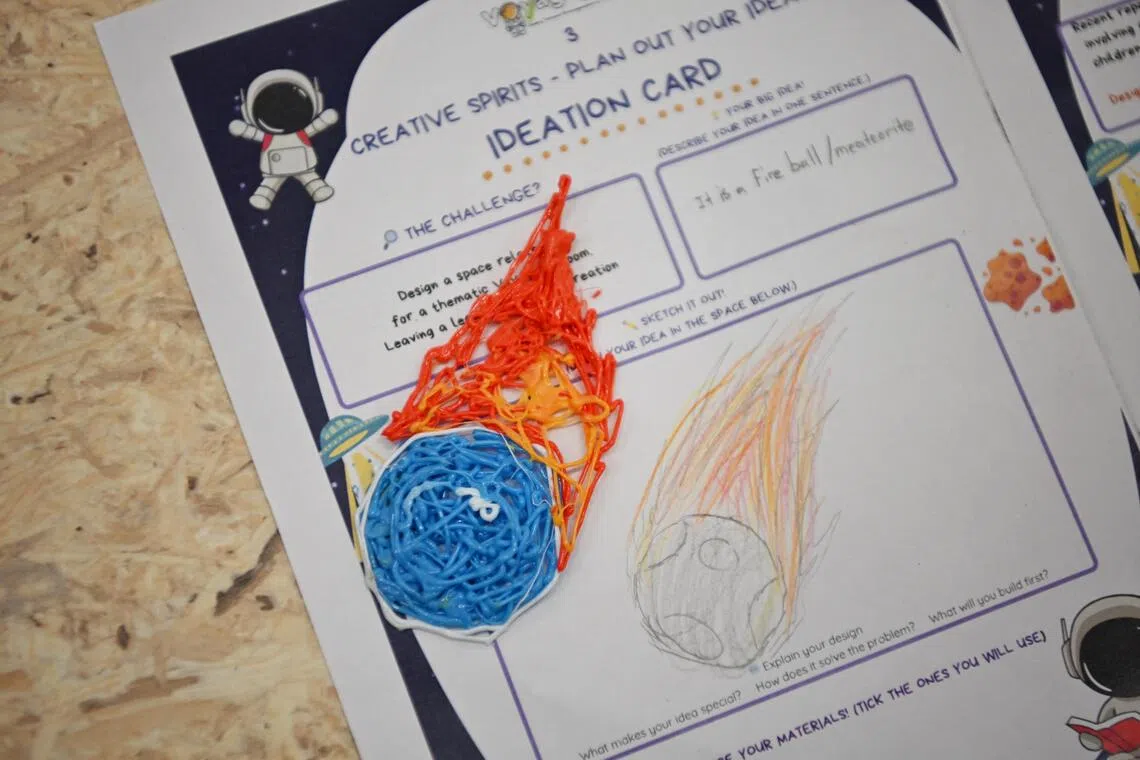 Una tarjeta de ideas utilizada por los estudiantes de la escuela primaria Palm View en el makerspace.