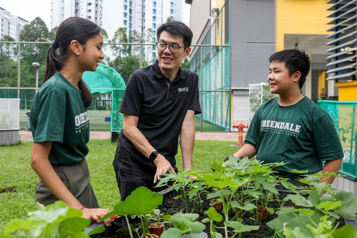 En la escuela secundaria Greendale en Punggol, una parcela de césped de 1200 pies cuadrados (del tamaño de un apartamento pequeño) se ha transformado en un salón de clases y un jardín comunitario comestible para que disfruten los estudiantes y el personal.