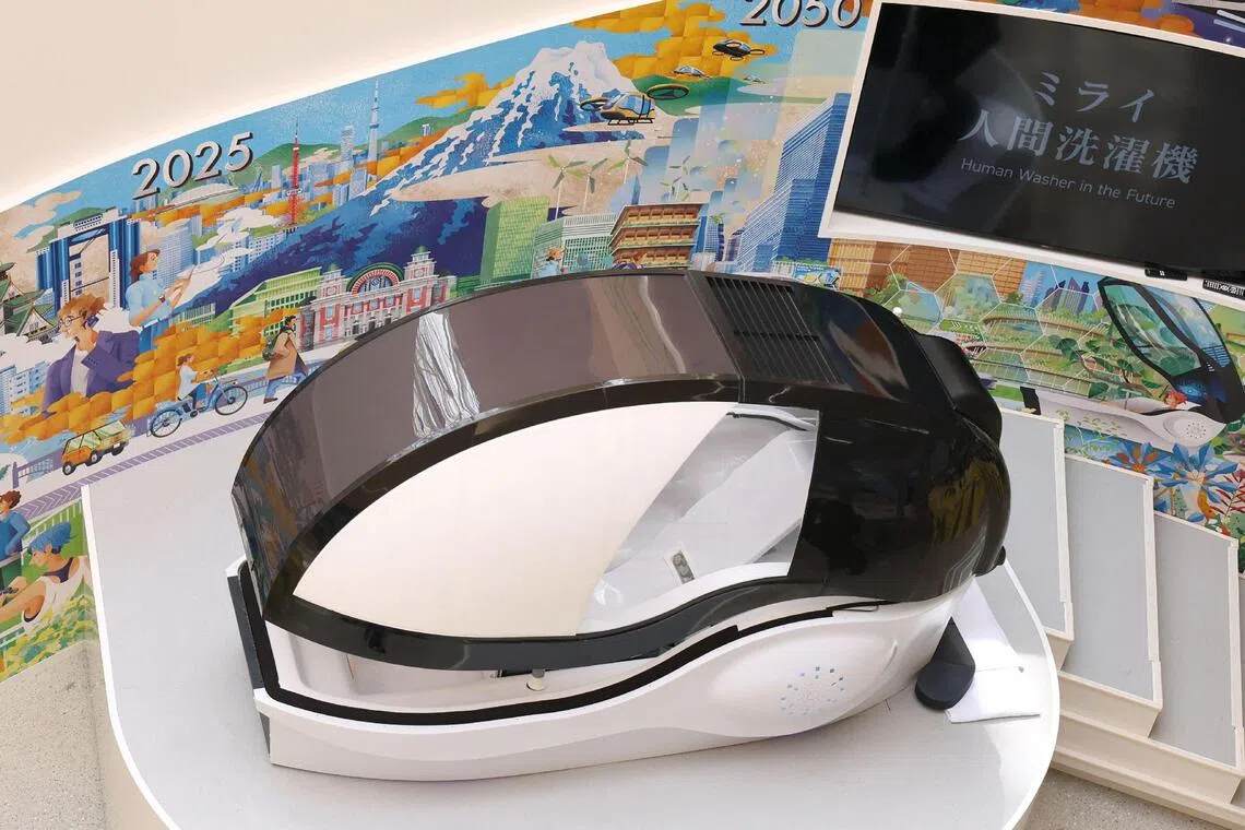 Un prototipo del dispositivo, llamado la lavadora humana del futuro, atrajo largas colas en la exposición de seis meses celebrada en Osaka en octubre después de recibir a más de 27 millones de personas.