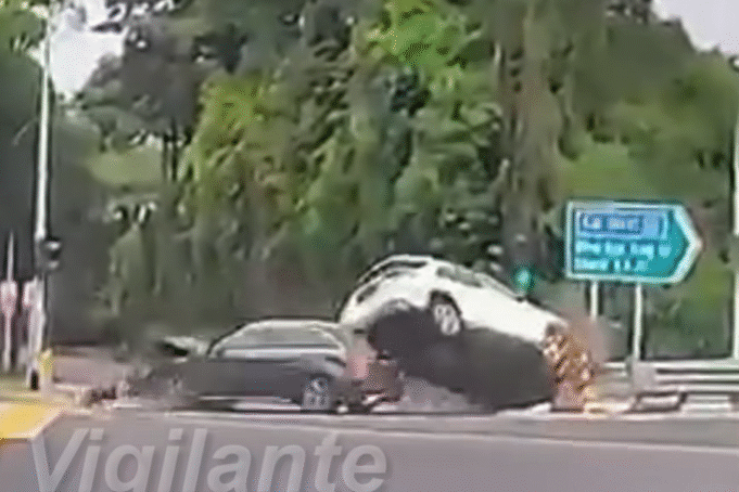 En las imágenes de Dashcam del accidente, la página de Facebook publicada en SG Road Vigilant, cuando se vio un automóvil blanco cruzando un cruce cuando el semáforo era verde cuando apareció un automóvil gris desde la izquierda, causando colisión.
