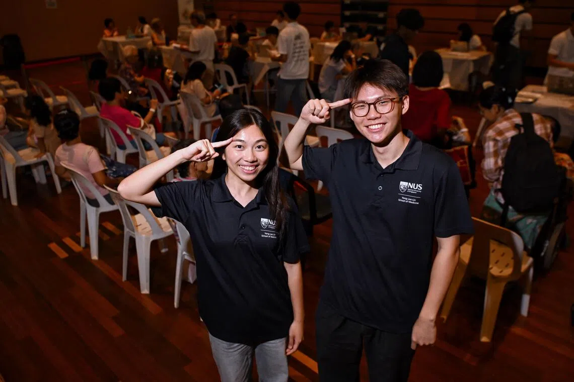 El Sr. Sim, de 19 años, era uno de los más de 50 estudiantes de la Facultad de Medicina NUS Yong Loo Lin (NUS Medicine) en el Centro Comunitario de Queenstown el 6 de diciembre.
