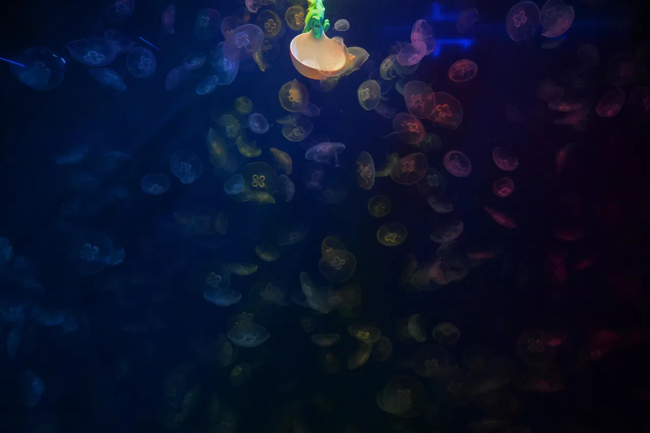 Un lote de medusas lunares, las favoritas del público, están siendo liberadas lentamente en su hábitat de exhibición.