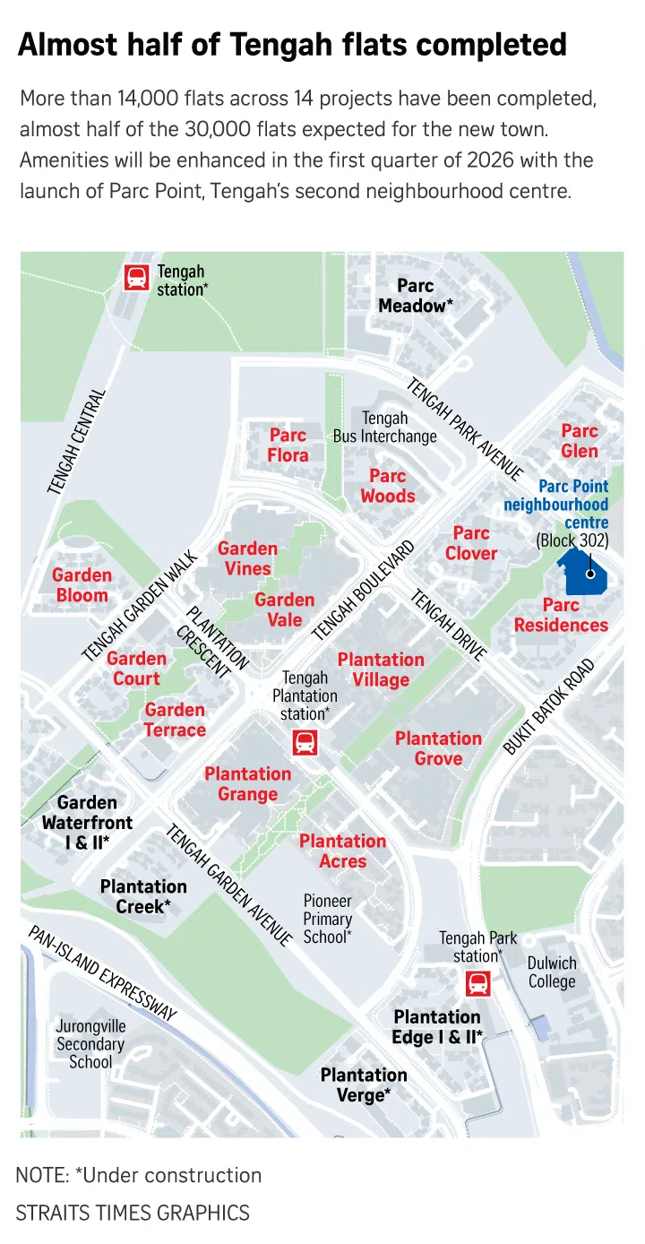 Los cinco proyectos del distrito, a saber, Parc Glen@Tengah, Parc Clover @Tengah, Parc Woods @Tengah, Parc Flora @Tengah y Parc Residences @Tengah, comprenden alrededor de 4.500 unidades, añadió.