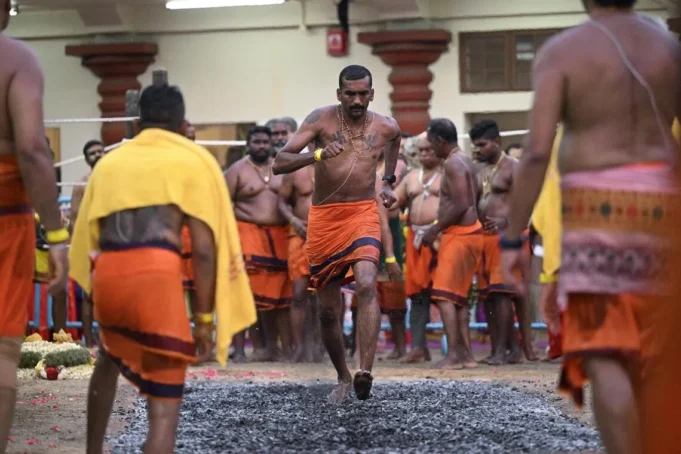 Sr. Shakran Krishnan (1), quien asumió el cargo de presidente en el templo de Shri Maryamman junio 2024La primera vez entró en el hoyo del fuego y dijo que fue una “experiencia pacífica y perfecta”.