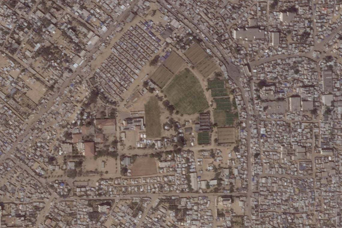 Las imágenes satelitales revisadas por Reuters han demostrado que las grandes áreas de Mawasi han sido repletas de carpas antes de la llegada actual, aunque queda algún campo aparente.