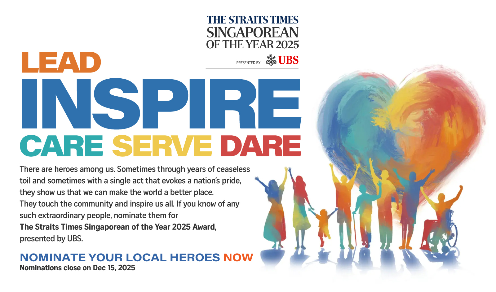 Straits Times en el año de Singapur Un premio anual que honra y celebra a los héroes comunes de Singapur y locales incompletos cuyas órdenes sobresalientes de saludos, habilidades y autoestima han mejorado la vida de las personas en la comunidad.