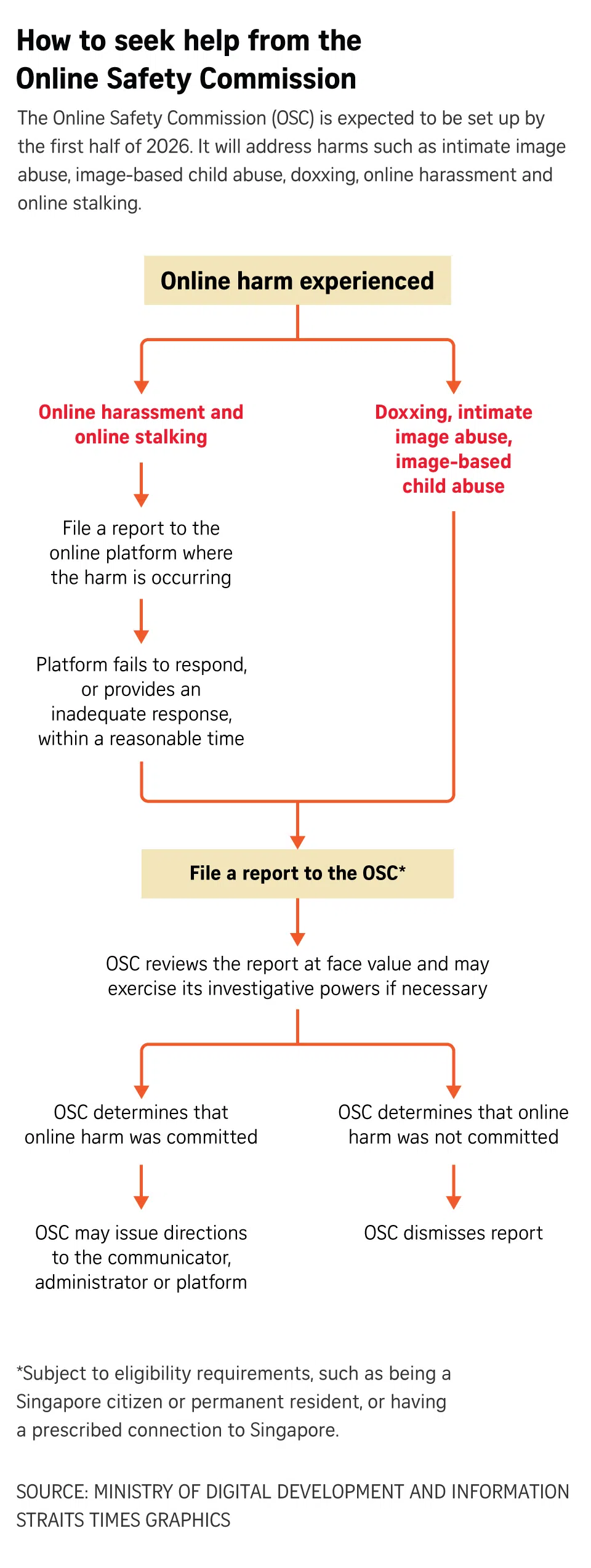 Después de un informe al OSC de una víctima, la agencia puede emitir instrucciones para tomar contenido dañino, limitar la cuenta en línea del delincuente o permitir que la víctima publique respuestas. Se pueden emitir instrucciones a comunicadores de contenidos, administradores, plataformas, proveedores de servicios de Internet o tiendas de aplicaciones.