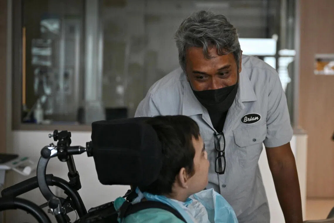 SINGAPUR – El decano Joachim Asrin, de catorce años, padece un raro trastorno genético (síndrome del gato que llora) Como resultado, tiene discapacidad intelectual, retrasos en el desarrollo y tono muscular deficiente.