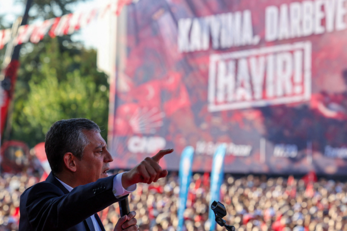Hablando en la manifestación el domingo, el líder de CHP Ojagur Ozel dijo que el gobierno ha estado tratando de atraparse en el poder al aliviar las reglas democráticas y suprimir el desacuerdo siguiendo la victoria de la oposición en el último año.
