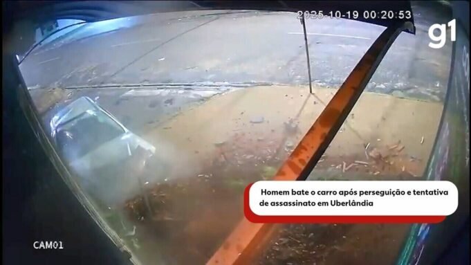 Hombre choca su auto tras persecución e intento de asesinato en Uberlandia Un hombre resultó herido luego de que su auto chocara contra un establecimiento comercial y se convirtiera en blanco de un intento de asesinato en Bairro Maravilha, Uberlandia. El caso se registró la madrugada de este domingo (19) en el cruce de las calles Simao Pedro y Dom Bosco. Mira el vídeo de arriba. Según la Policía Militar (PM), la víctima dijo que huía de los disparos del conductor de otro vehículo. Al intentar escapar, perdió el control de la dirección y se estrelló contra la entrada de la instalación. ✅ Haz clic aquí para seguir el canal de g1 Triángulo en WhatsApp Punto a indicar en el video: el tránsito en la calle estaba tranquilo, hasta que el auto pasó la esquina de la acera; A continuación, el coche cruzó la calle y chocó contra el macizo de flores situado delante del establecimiento. Segundos después llegó otro coche; El conductor apuntó con un arma al vehículo siniestro y disparó tres tiros; Luego, el conductor se alejó a toda velocidad; Cuando la víctima salió del auto y yacía en el suelo, un transeúnte se adelantó para ayudarlo; La víctima fue encontrada consciente con cortes en la rodilla derecha, un presunto fémur y heridas en la cabeza. Todas las lesiones se debieron a accidentes. El hombre fue trasladado al hospital clínico de la Universidad Federal de Oberlandia (HC-UFU). Se desconoce su estado de salud. El sospechoso no ha sido identificado y el primer ministro lo está buscando. Más