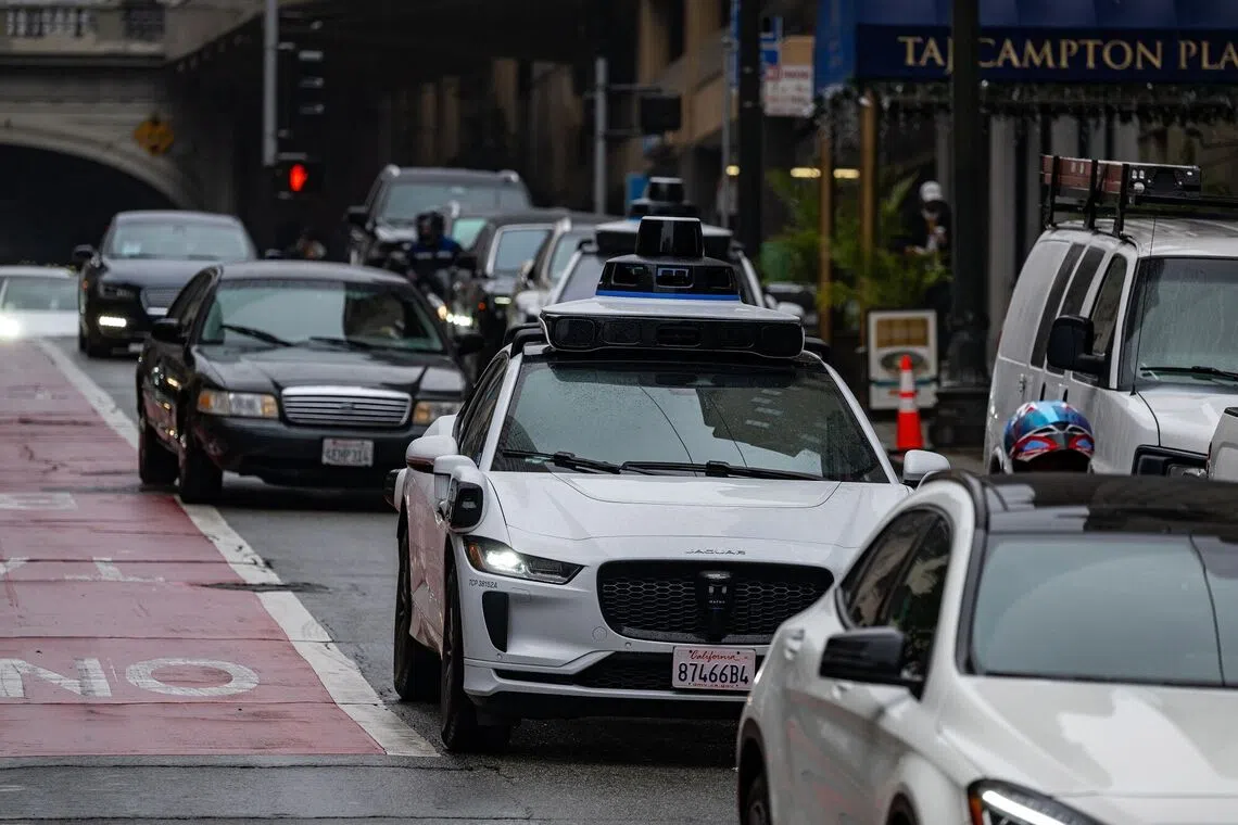 El Jaguar blanco de Waymo, equipado con cámaras y sensores, se ha convertido en una vista familiar en las calles de San Francisco.