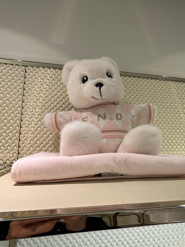 Un conejito de peluche para niños cubierto con el logo de Fendi también está hecho de visón y tiene un precio de £ 4,050.