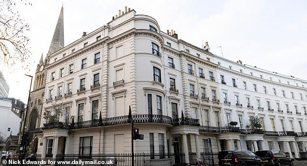 En la foto: la entrada al edificio principal de apartamentos. El magnate de la energía Yury Zhelyabovskiy llevó a cabo amplias renovaciones en su residencia catalogada de Grado II en Bayswater