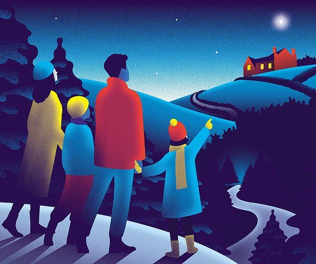 Allí, frente a ti, está la vista de tu vida, extendida bajo un cielo estrellado. (A menudo le pido a nuestro talentoso ilustrador Neil Webb que nos regale estrellas en Navidad, porque son hermosas y siempre han mostrado el camino a la gente. En caso de duda, mire hacia arriba. Incluso si el cielo está nublado, todavía están allí).
