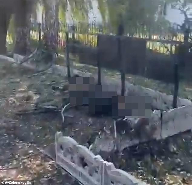 Zelensky publicó un video amateur de la escena que muestra cadáveres esparcidos por el suelo y una minivan quemada cerca de un patio de recreo