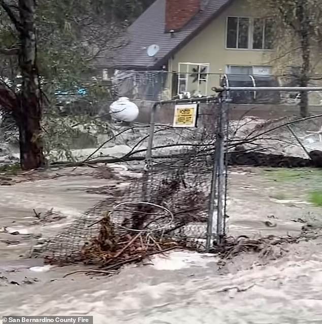 Los bomberos del condado de San Bernardino dijeron que rescataron a personas atrapadas en automóviles el miércoles cuando el lodo y los escombros se precipitaron por un camino que conduce a Wrightwood, una ciudad turística en las montañas de San Gabriel, a unas 80 millas (130 kilómetros) al noreste de Los Angeles. No quedó claro de inmediato cuántos fueron rescatados.