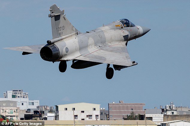 Un caza Mirage 2000 de la Fuerza Aérea de Taiwán se acerca para aterrizar en una base aérea en Hsinchu, Taiwán, el 29 de diciembre de 2025.