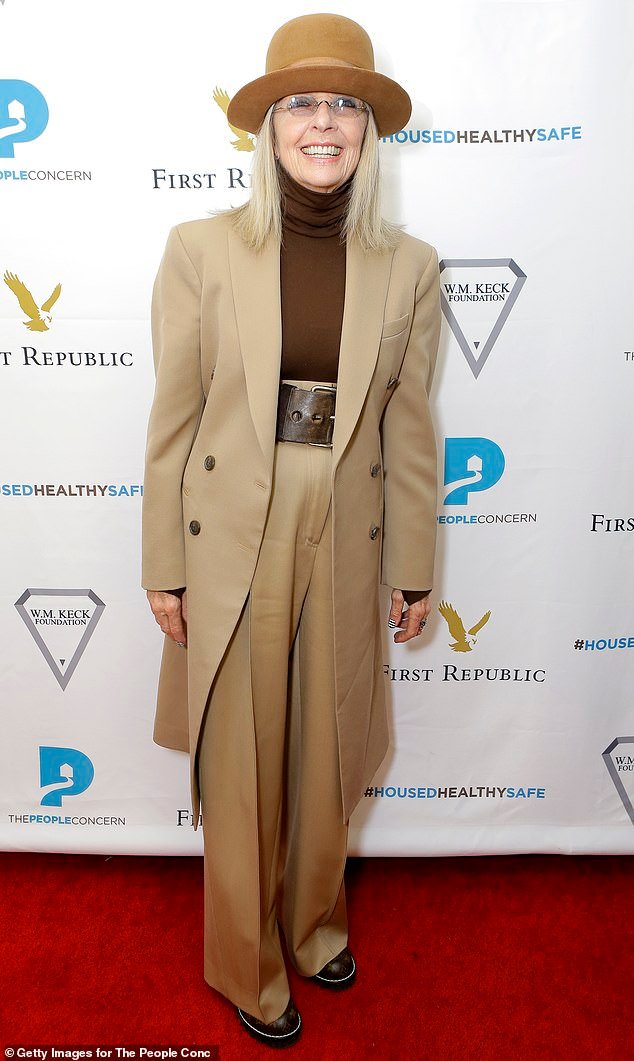 Keaton nunca se casó, pero adoptó dos hijos de unos 50 años: su hija Dexter y su hijo Duke.