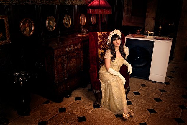 Daisy Lowe se puso una colección de vestidos de regencia mientras posaba con una bomba de calor para la campaña publicitaria de orgullo y prejuicio