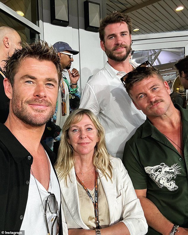 Son la familia dorada de Australia, con Chris Hemsworth y sus famosos hermanos Liam y Luke que encarnan los valores australianos saludables y trabajadores que los han convertido en nombres conocidos en todo el mundo. Foto con su madre Leonie