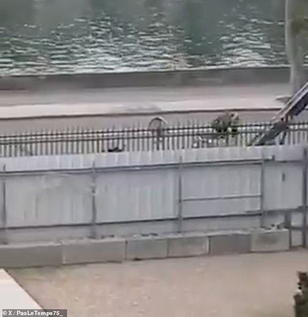 Hizo un giro en U en una calle de tres carriles de sentido único junto al Sena y fue utilizada por la pandilla para subir al primer piso del museo.