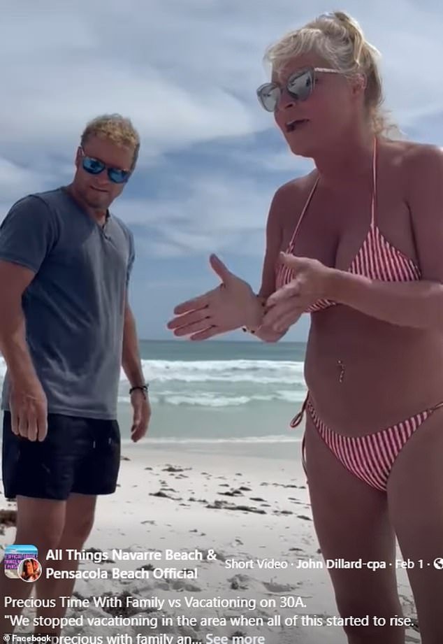 Las imágenes de diferentes disputas mostraron al administrador de la propiedad sosteniendo el taladro en la mano mientras discutía con los bañistas que, según él, estaban invadiendo la playa privada de Littrell.