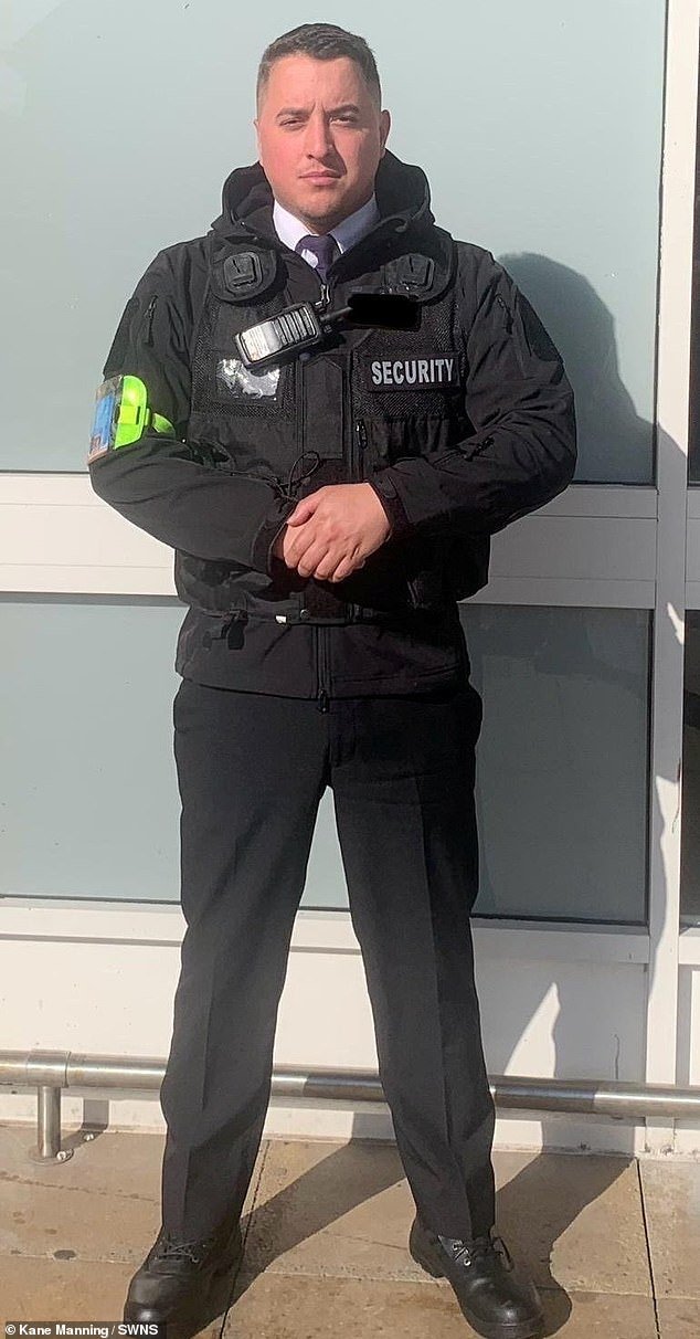 La guardia de seguridad de los supermercados, Kane Manning, en la foto, ha revelado la sombría realidad de trabajar en las calles secundarias del crimen de Gran Bretaña.