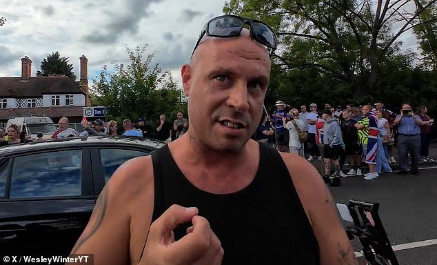 Un manifestante cuyos dientes fueron derribados cuando la policía antidisturbios le rompió un escudo en la cara durante el caos fuera del hotel migrante Epping está de vuelta en la escena después de pegar a los Gnashers desaparecidos.