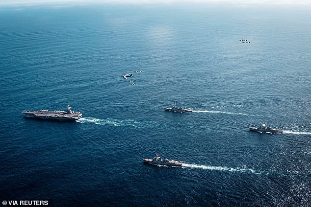 El portaaviones llegó a aguas del Caribe el 11 de noviembre con más de cuatro mil marineros, aviones de combate y buques de apoyo, incluidos el USS Thomas Hudner, el USS Rampage y el USS Normandy.