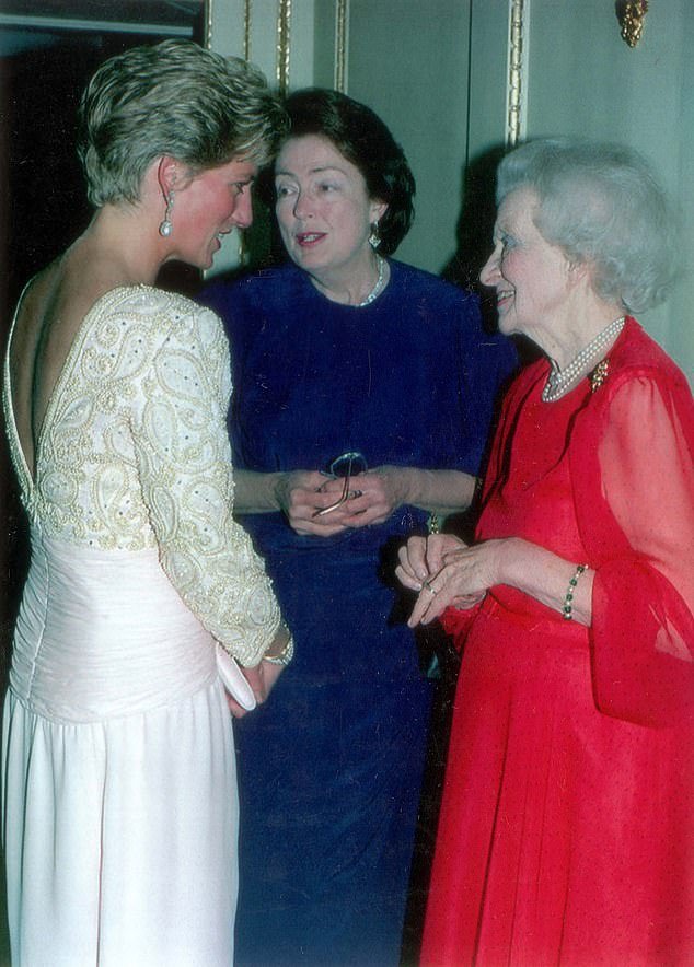 Princesa Diana con su tía Mary Roche (centro), quien es la abuela de Rosie