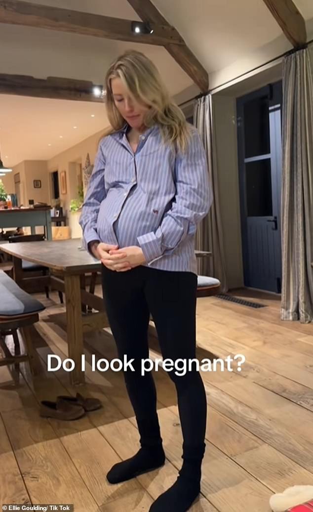 Ellie Goulding mostró su panza mientras le preguntaba a su novio Beau Minniear: “¿Parezco embarazada?”. en un hilarante tiktok clip el lunes.