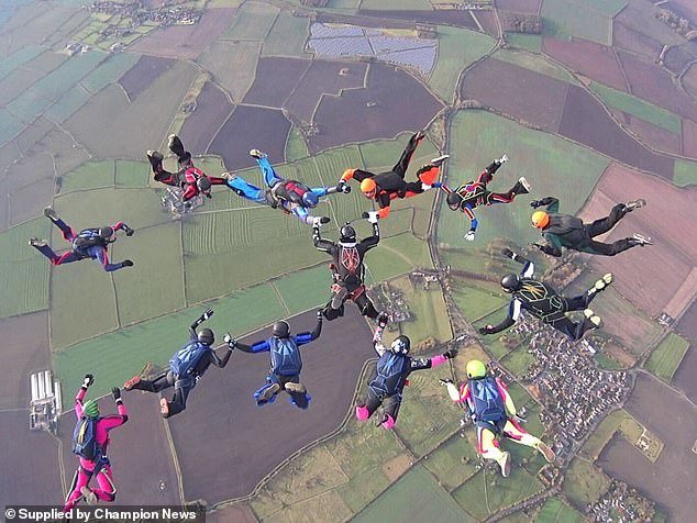 La imagen muestra a miembros de la Sociedad de Paracaidismo de la Universidad de Southampton durante un salto en 2017.