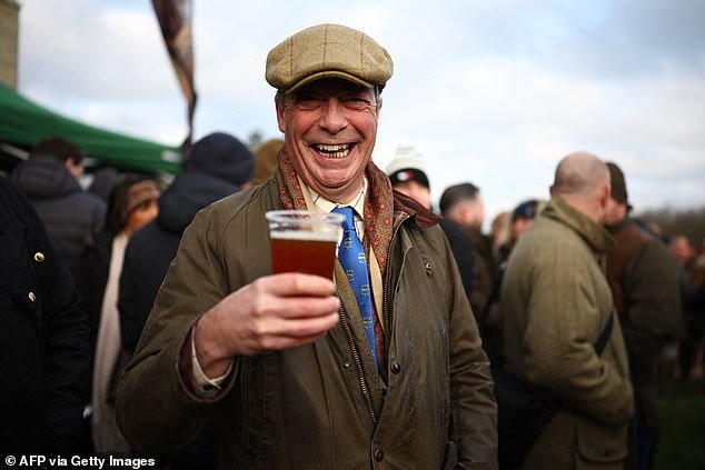 Nigel Farage disfruta de una cerveza mientras se mezcla con el público que espera en el Castillo de Chiddingstone la caza anual del Boxing Day.
