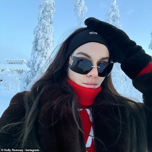 Holly Ramsay estaba dispuesta a compartir instantáneas de su estilo en la pista mientras publicaba una impresionante selfie con su cara haciendo pucheros, gafas de sol Miu Miu de £ 233 y una diadema Alo durante sus vacaciones familiares con su prometido Adam Peaty, su hijo George y su familia.