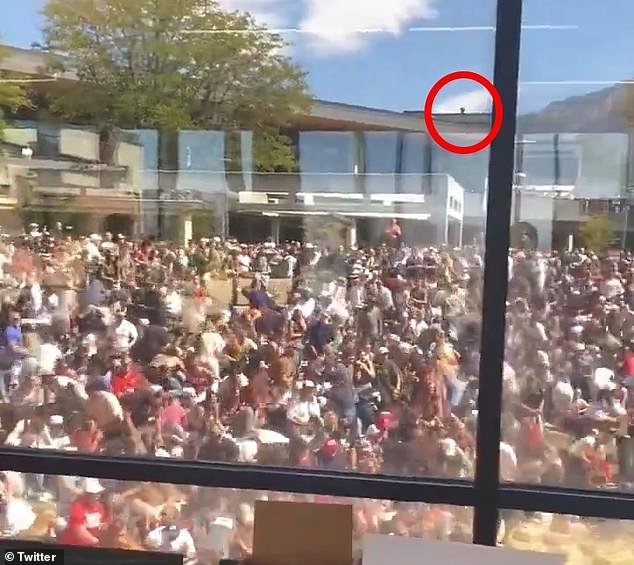 Kirk es visto momentos antes de que el tiroteo fatal arroje sombreros a la multitud que se había reunido para escucharlo hablar