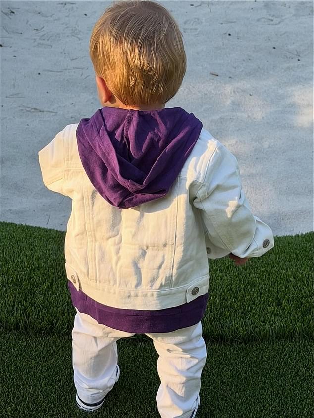 El atuendo de Jack llevó a la familia Bieber directamente al 2010, con el uniforme My World Tour completo con un conjunto completamente blanco y una sudadera con capucha morada asomando, reconocible al instante para los fanáticos.