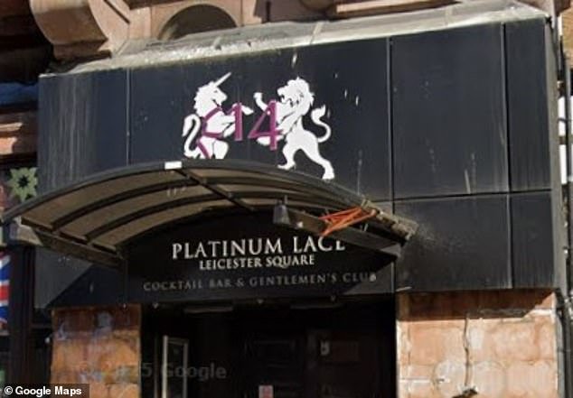 Según los informes, la pandilla devoró tragos de £ 14 mientras las mujeres del club de striptease Platinum Lace en Leicester Square bailaban a su alrededor hasta la madrugada del domingo 21 de diciembre.