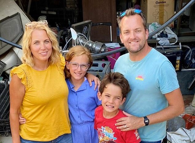 Jasmine con sus hijos Joy, que ahora tiene 12 años, y Albion, de 9, y su marido Jon.